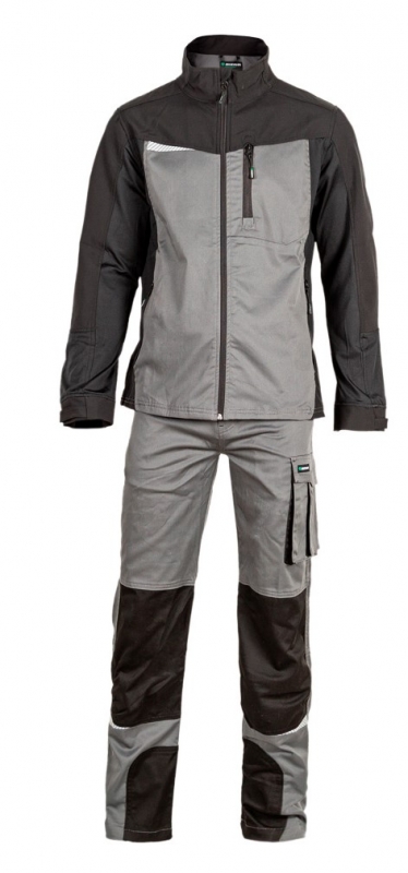 Adjustable braces. Decorative retroreflective elements. Preformed knees for maximum wearing comfort. 7 functional pockets. Big chest pocket. Color: grey + black. Size: S / M / L / XL / XXL / XXXL