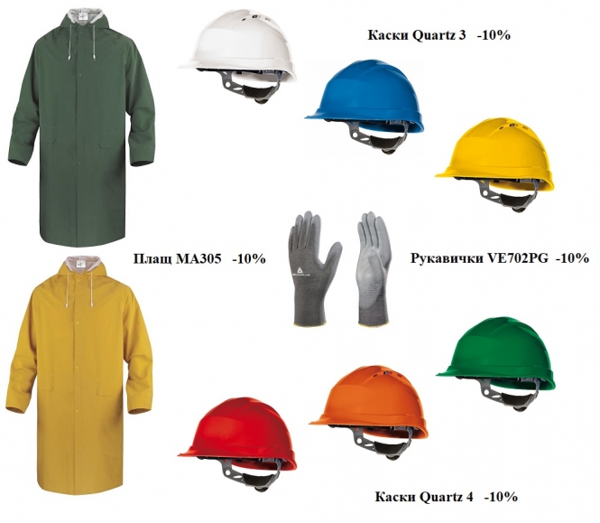 В марте 2025 года компания Дельта Плюс Украина некоторые товары собственного производства по сниженным ценам. Вы сможете купить плащи для защиты от дождя МА305, каски Quartz 3, Quartz 4 и перчатки VE702PG на 10% дешевле.