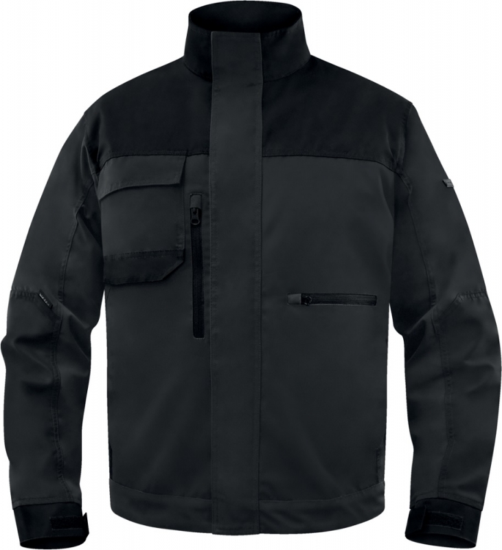Центральная застежка-молния под защитной планкой. 7 карманов, в том числе 2 внутренних. Эластичные вставки с двух сторон пояса. Вентиляционные отверстия под руками. Фиксированный держатель для бейджа. Тройные швы. Цвет: темно-серый + черный. Размер: S / M / L / XL / XXL / XXXL / 4XL