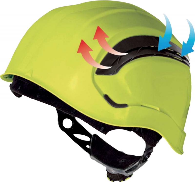 Помаранчева захисна каска Granite wind спеціально розроблена для проведення роботи на висоті. Наголів’я з текстильними стрічками і плавною роторною системою регулювання розміру забезпечує покращені характеристики амортизації ударів і комфорту у використанні висотної каски. Ремінець з трьома точками кріплення до каски надійно утримує її на голові прибудь-яких умовах проведення верхолазних робіт.